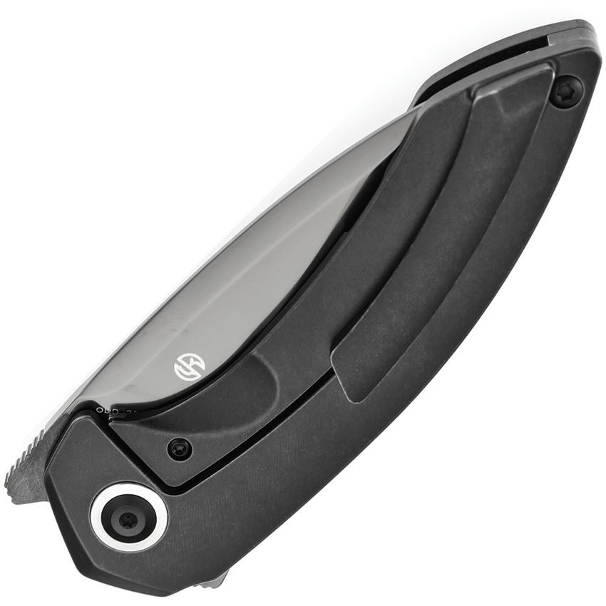 Kansept 1077A6 ODD 21 Black Mirror CPM-20CV Drop Point Framelock Knife Blackwash Titanium Handles