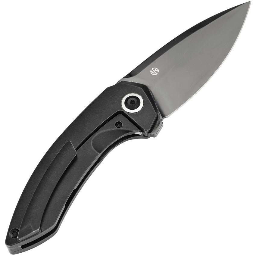 • Kansept Knives - ODD 21 Black Mirror CPM-20CV Drop Point Framelock Knife Blackwash Titanium Handles