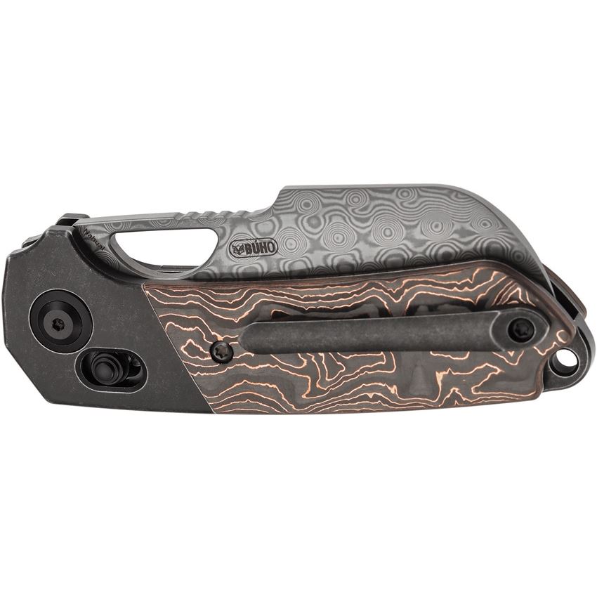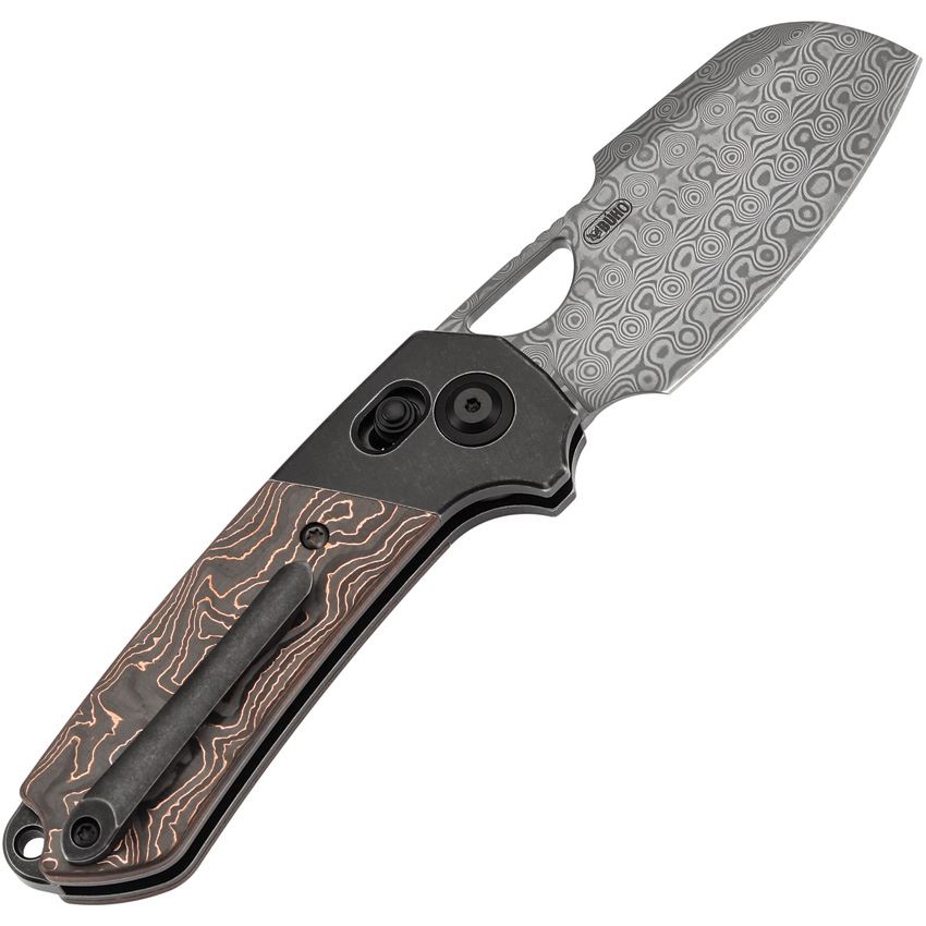 • Kansept Knives - Nahual Damascus Crossbar Lock Knife Copper Foil Carbon Fiber Handles