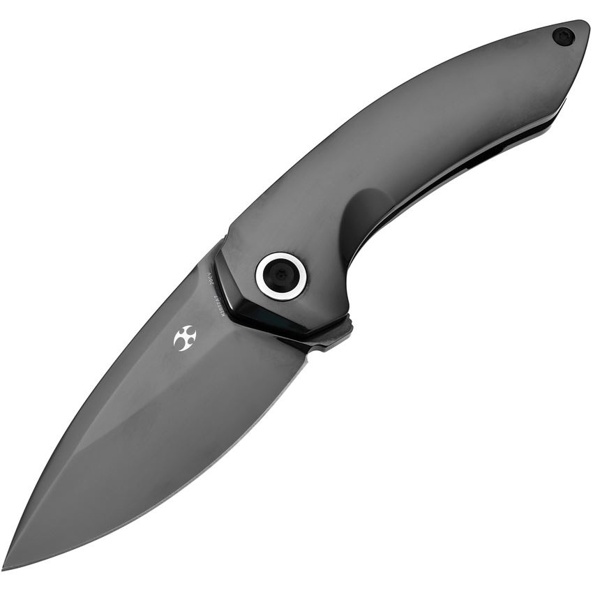 Model/Item/Part Number - K1077A7. Kansept Knives - ODD 21 Black Mirror CPM-20CV Drop Point Framelock Knife Black Mirror Titanium Handles. 4.25" (10.8cm) closed. 3.13" (7.95cm) black mirror finish CPM-20CV stainless drop point blade. Black mirror finish titanium handle. Extended tang. Pocket clip. Black nylon pouch. Boxed. Made in China.