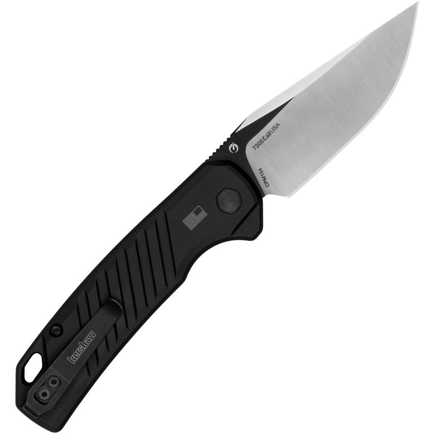Model/Item/Part Number - KS7305. Kershaw Knives - Auto Launch 23 Satin Button Lock Knife Black Anodized Aluminum Handles. Automatic opening. 4.38" (11.13cm) closed. 3.38" (8.59cm) CPM-154 stainless trailing point blade. Black anodized aluminum handle. Lanyard hole. Pocket clip. Black Cerakote and satin finish blade. Boxed. Proudly made in the USA.