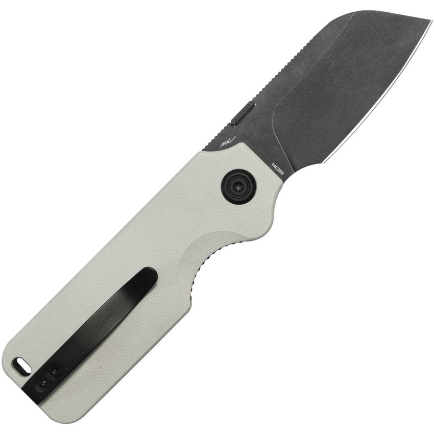 • Kubey Knives - Boxer Blackwash 14C28N Sheepsfoot Linerlock Knife White G10 Handles