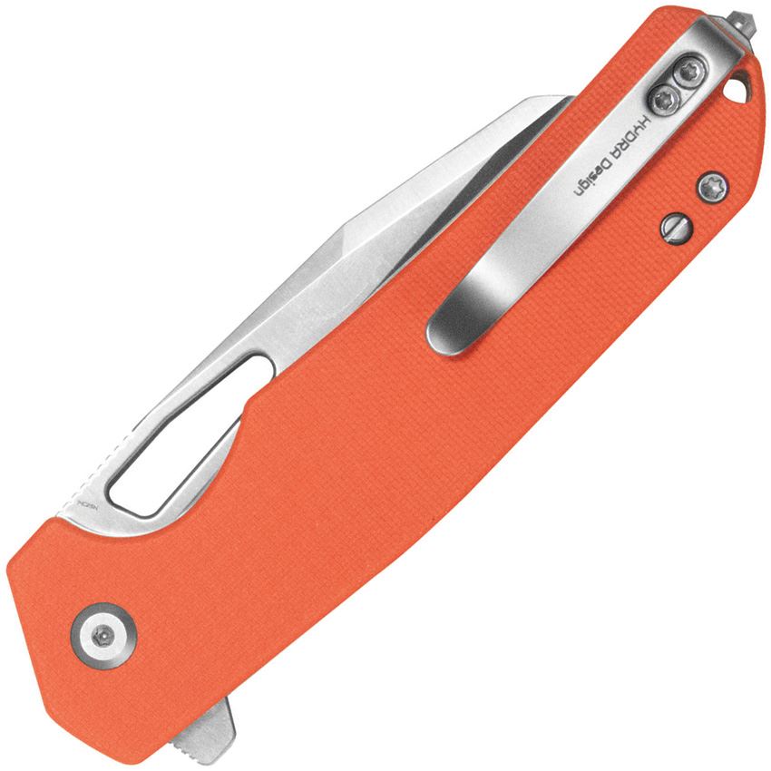 Model/Item/Part Number - KUB363B. Kubey Knives - 10-8 Satin 14C28N Sheepsfoot Button Lock Knife Orange G10 Handles. 4.75" (12.07cm) closed. 3.13" (7.95cm) satin finish 14C28N Sandvik stainless sheepsfoot blade. Orange G10 handle. Belt/cord cutter. Glass breaker. Lanyard hole. Pocket clip. Extended tang. Thumb pull. Boxed. Made in China.