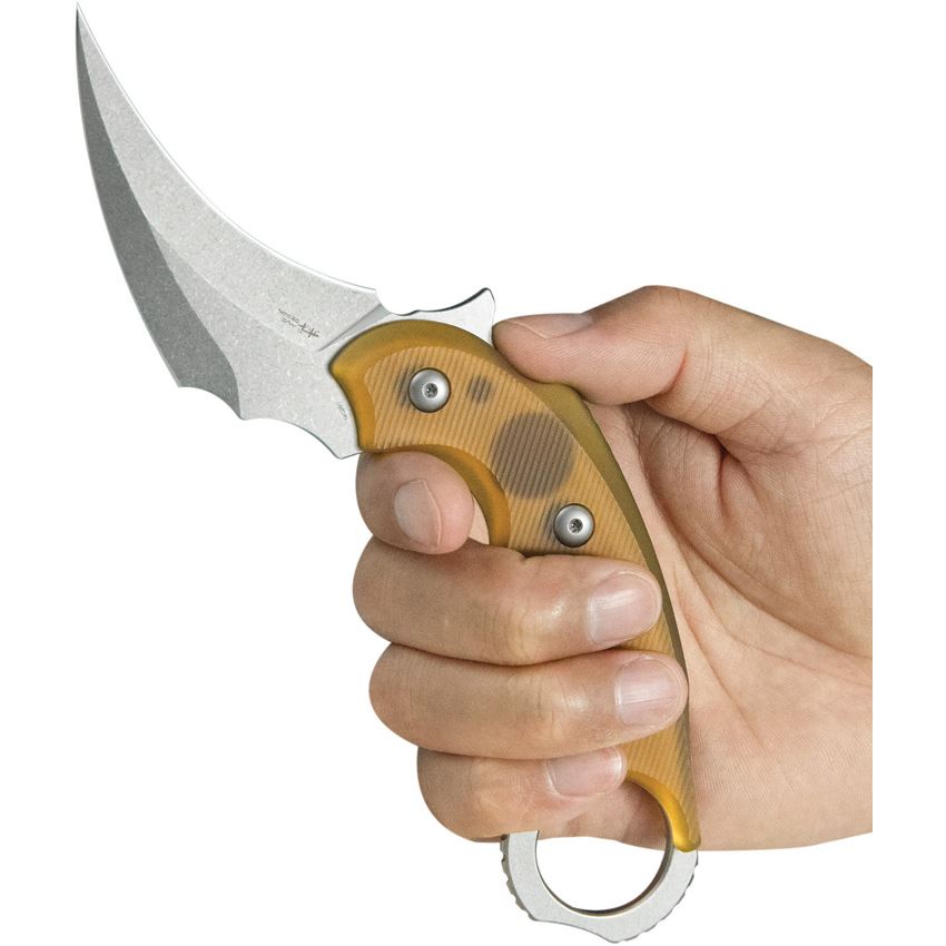 • Kubey Knives - Velociraptor Stonewash Karambit Fixed Blade Knife Ultem Handles
