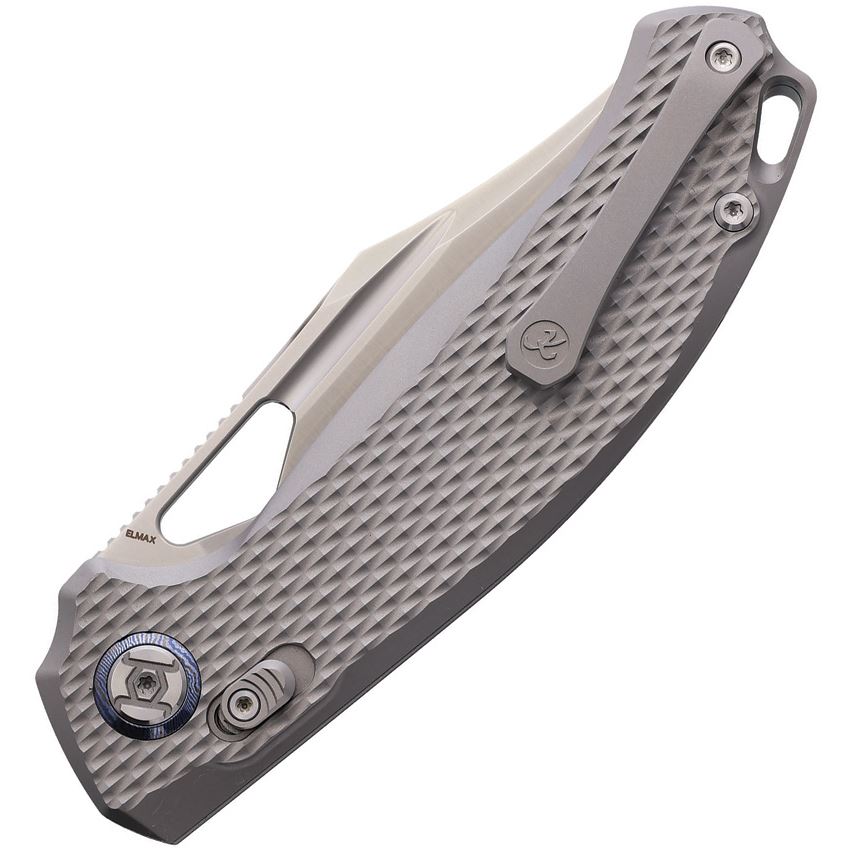 • Kunwu Knives - Django XL Satin Elmax Clip Point Xt Lock Knife Satin Diamond Texture Titanium Handles