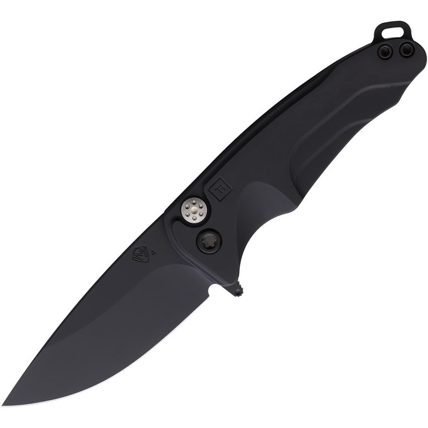 Model/Item/Part Number - MDT394PQ30PV. Medford Knives - Smooth Criminal Black DLC S45VN Drop Point Button Lock Knife Black DLC Coated Titanium Handles. 3.88" (9.86cm) closed. 3" (7.62cm) black DLC coated S45VN stainless drop point blade. Black DLC coated titanium handle. Extended tang. Lanyard hole. Pocket clip. Black nylon zippered storage case. Boxed.