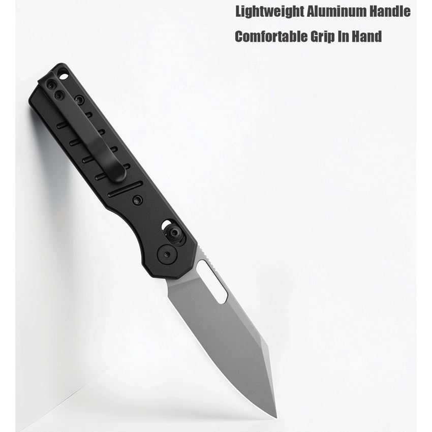 Model/Item/Part Number - MGR822ABK. Miguron Knives - Gatov Gray D2 Clip Point Crossbar Lock Knife Black Aluminum Handles. 3.88" (9.86cm) closed. 2.88" (7.32cm) gray sand blast finish D2 tool steel clip point blade. Black PVD coated aluminum handle. Thumb pull. Lanyard hole. Pocket clip. Boxed. Made in China.