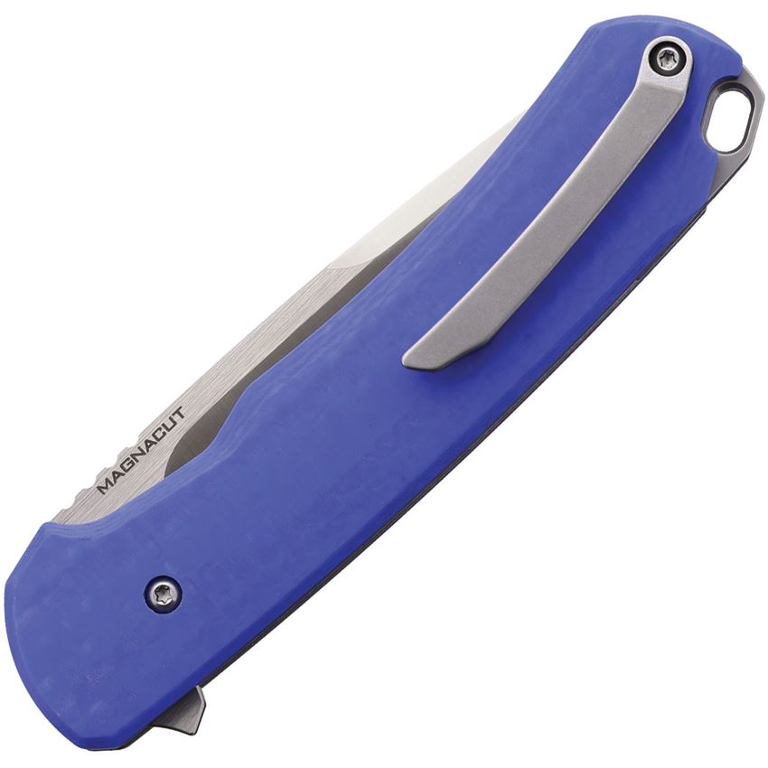 Model/Item/Part Number - PKMKBP002. MK Knives & Tools - Humbler Skyline Satin MagnaCut Drop Point Linerlock Knife Blue Carbontex G10 Handles. 4" (10.16cm) closed. 3" (7.62cm) satin finish MagnaCut steel drop point blade. Blue CarbonTex G10 handle. Extended tang. Lanyard hole. Pocket clip. Boxed. Made in China.