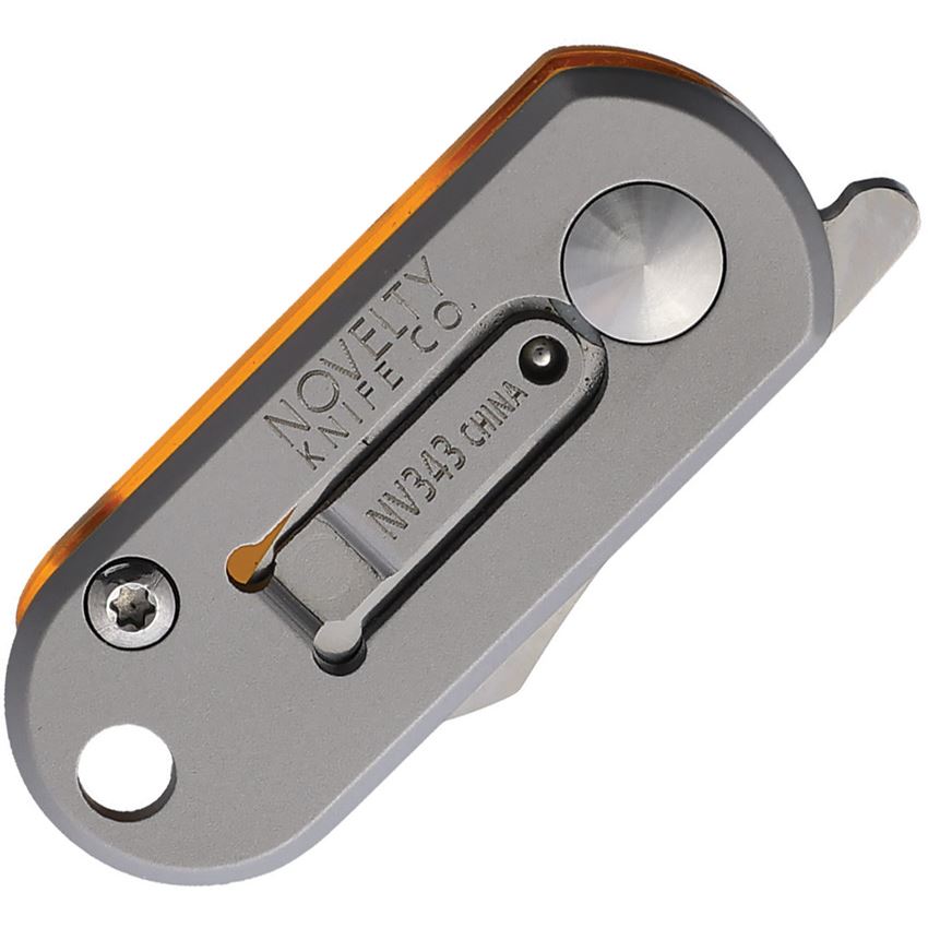 Model/Item/Part Number - NV343. Novelty Cutlery - Mini Key Ring Knife Amber Translucent Handles. 1.75" (4.45cm) closed. 0.75" (1.91cm) satin finish stainless blade. Amber translucent acrylic handle. Extended tang. Pocket clip. Boxed. Made in China.