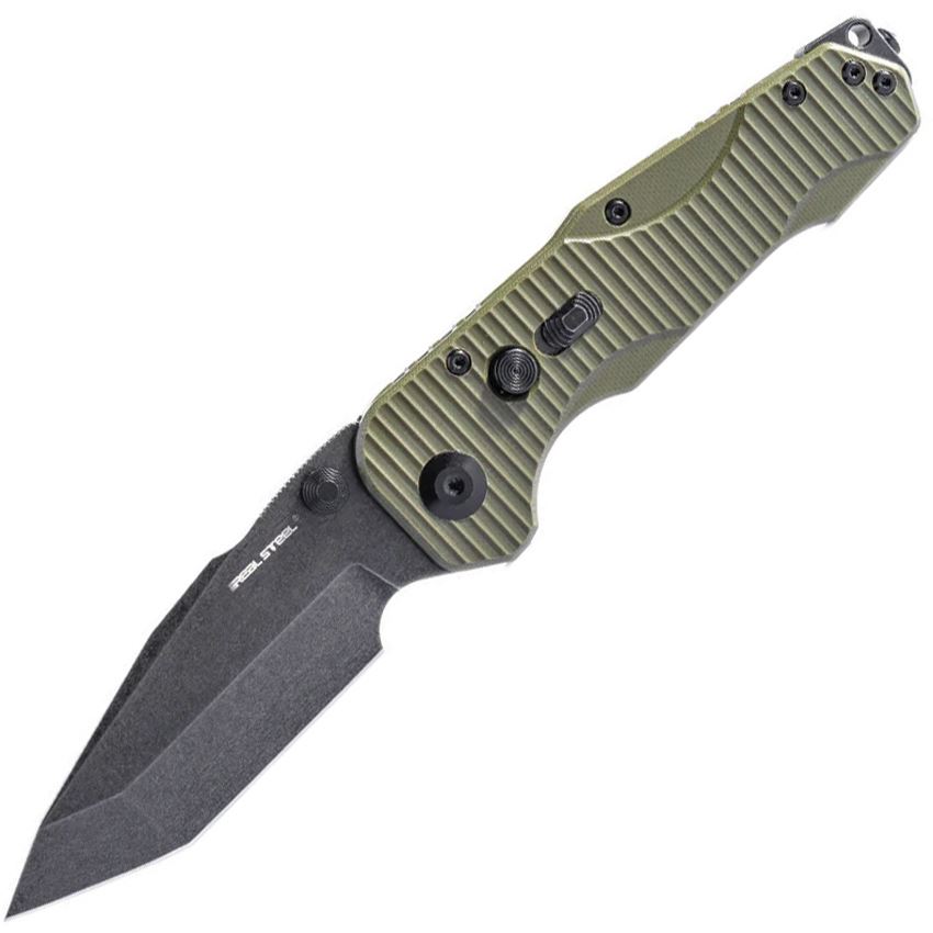 • Real Steel Knives - Evolution Ironclad Blackwash D2 Tanto Framelock Knife Od Green G10 Handles