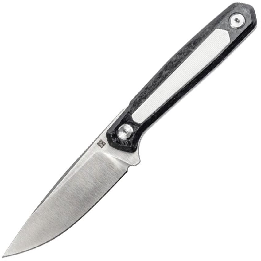 • Carbon fiber handle with white G10 inlay