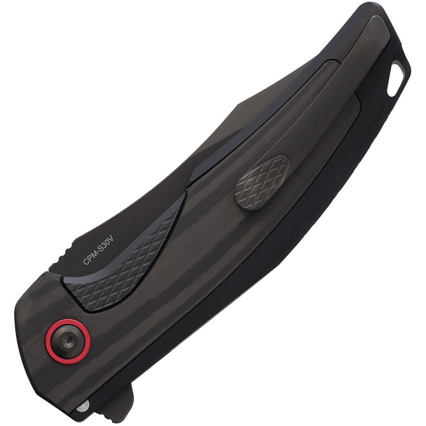 • 3.5 inch (8.89cm) black DLC coated CPM S30V stainless clip point blade