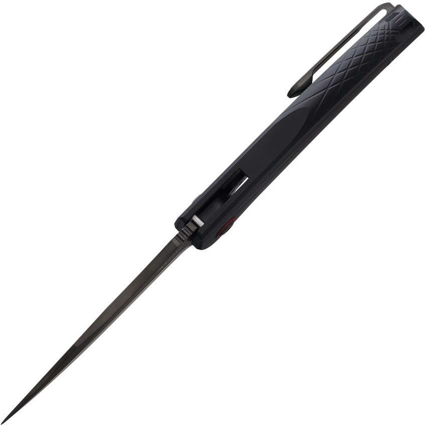 Model/Item/Part Number - REA200. Reate Knives - Jack Jr Black S30V Clip Point Framelock Knife Black/Carbon Fiber Handles. 4.5" (11.43cm) closed. 3.5" (8.89cm) black DLC coated CPM S30V stainless clip point blade. Black aluminum handle with carbon fiber inlay. Extended tang. Lanyard hole. Pocket clip. Red accents. Boxed. Made in China.
