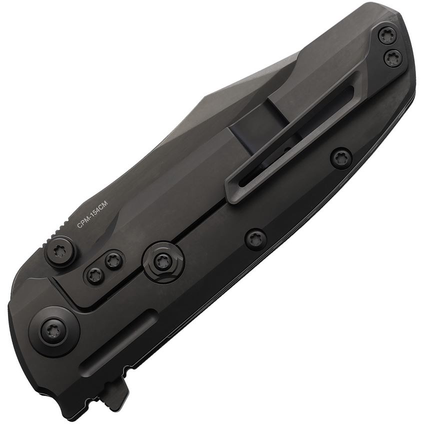 • 3.5 inch (8.89cm) black DLC coated 154CM stainless clip point blade