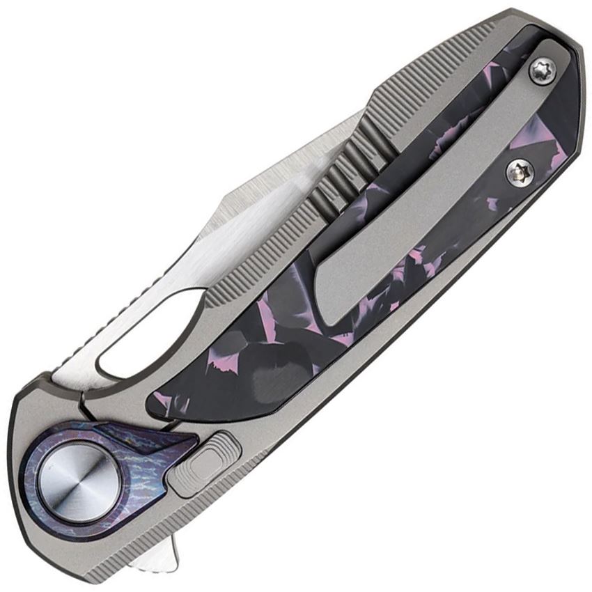 • Gray titanium handle with Black and purple carbon fiber inlay