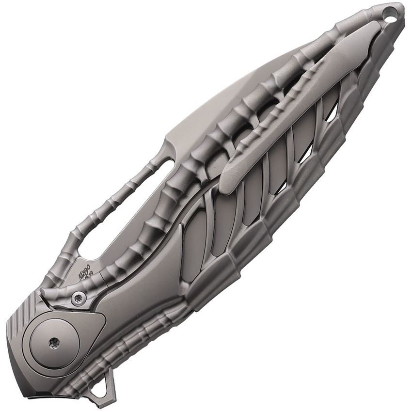 • Rike Knives - Thor 6 Bead Blast M390 Framelock Knife Gray Sculpted Titanium Handles