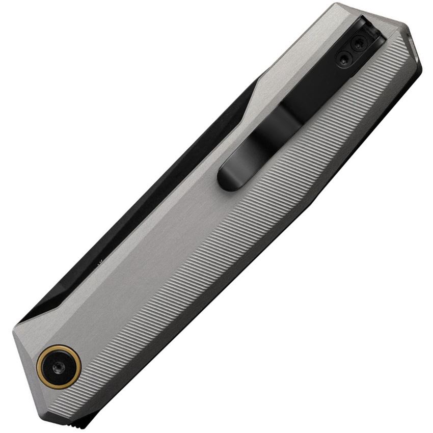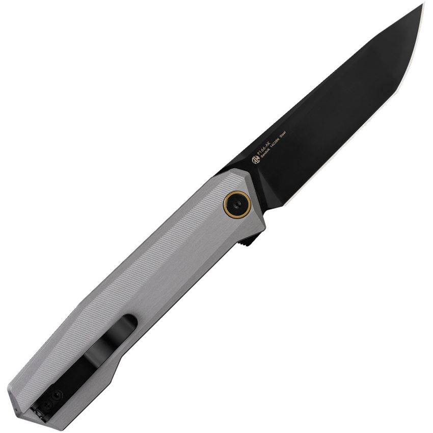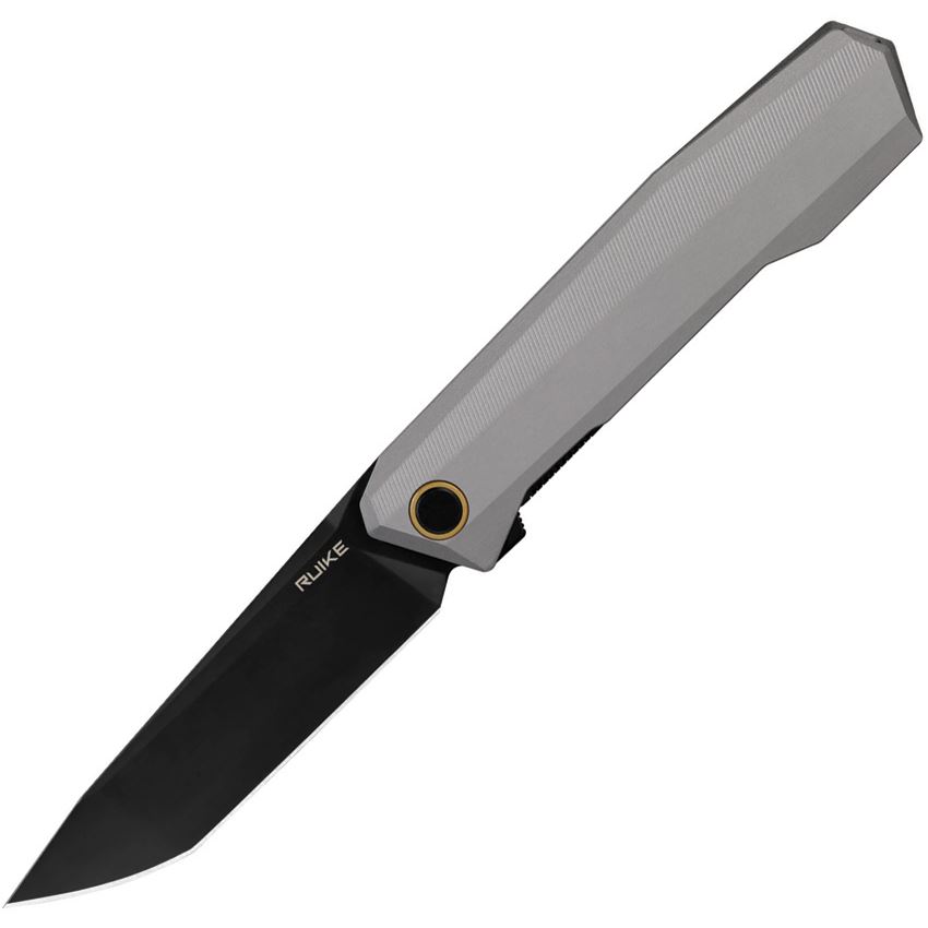 Model/Item/Part Number - RKEP166AK. Ruike Knives - P166 Black 14C28N Tanto Linerlock Knife Gray Aluminum Handles. 4.88" (12.4cm) closed. 3.75" (9.53cm) black DLC coated 14C28N Sandvik stainless tanto blade. Gray aluminum handle. Extended tang. Pocket clip. Lanyard hole. Boxed. Made in China.