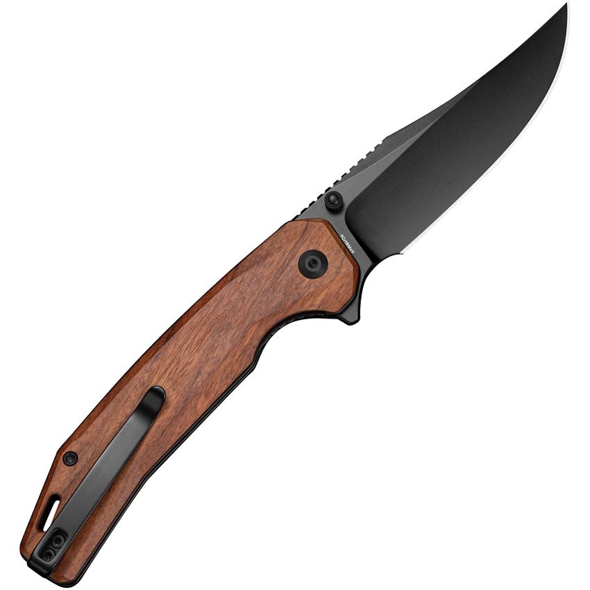 SenCut 250383 Vornix Black 9CR18MOV Clip Point Linerlock Knife Brown Wood Handles
