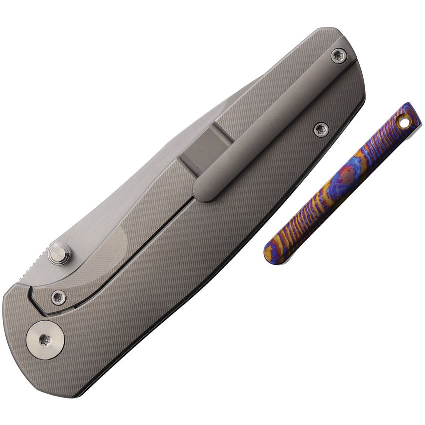 Vanguard G043 ESOX Satin M390 Framelock Knife Gray Titanium Handles