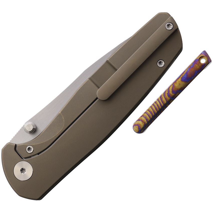 • Vanguard Knives - ESOX Satin M390 Framelock Knife Stonewash Bronze Finish Titanium Handles