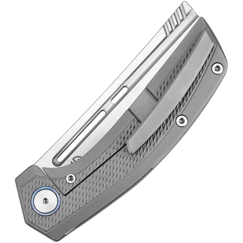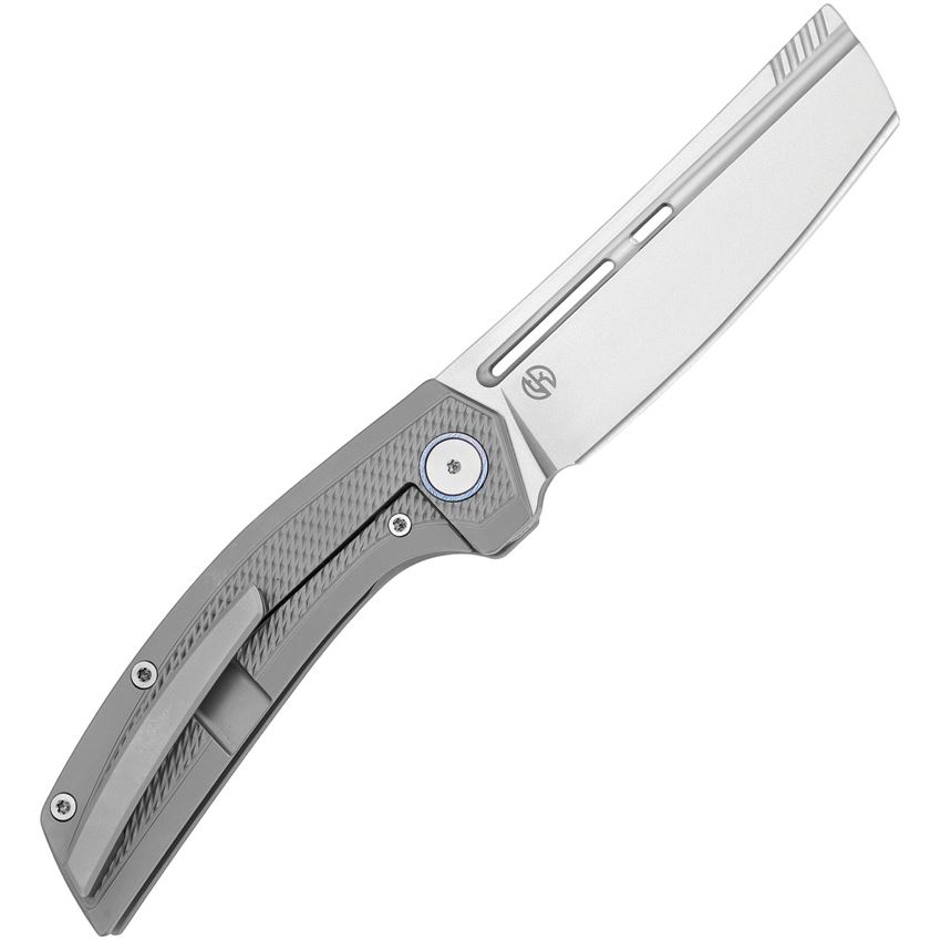 • Vanguard Knives - Nakiri Stonewash M390 Cleaver Framelock Knife Gray Textured Titanium Handles Timascus Inlay