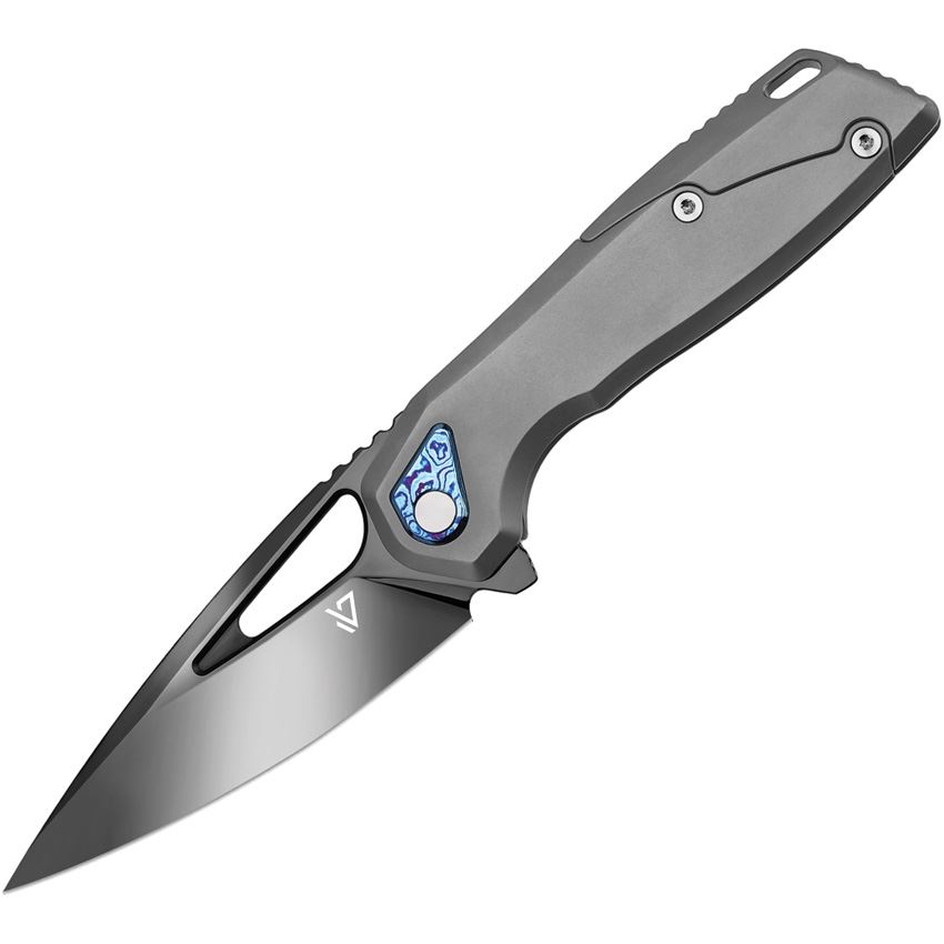 • Vanguard Knives - StarRunner Black Mirror M390 Framelock Knife Gray Titanium Handles