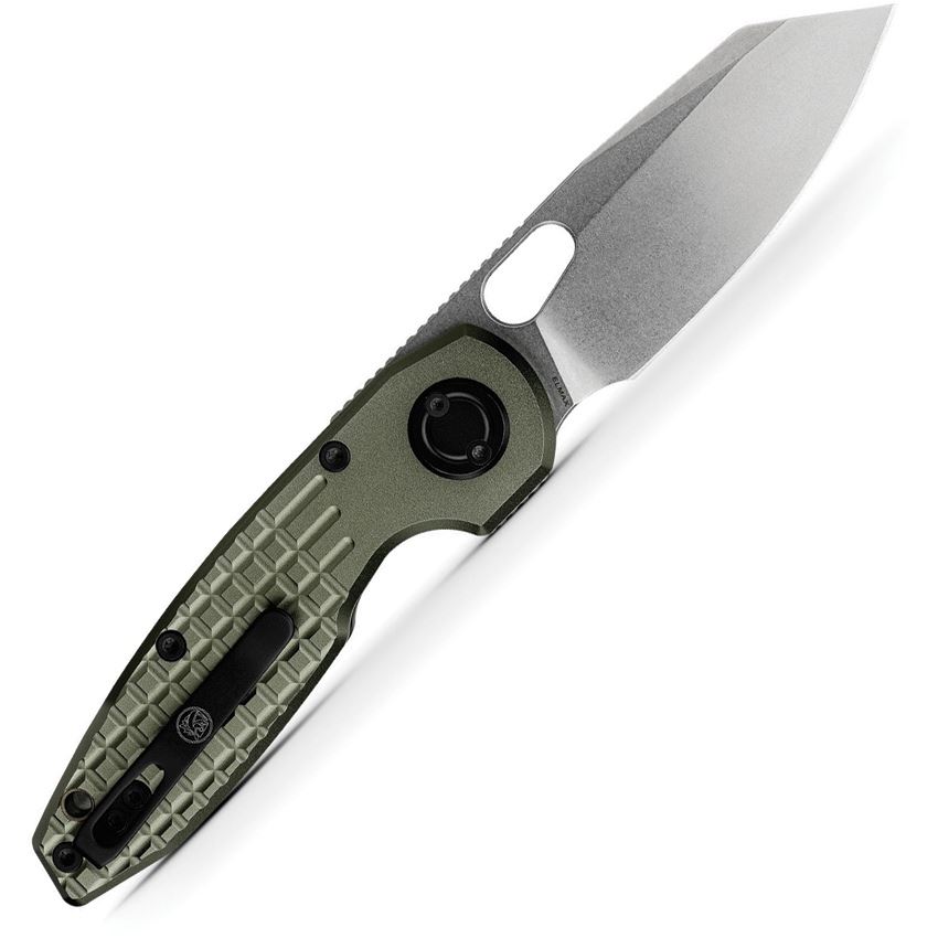 • Vosteed Knives - Ankylo Stonewash Elmax Vanchor Lock Knife OD Green Aluminum Handles