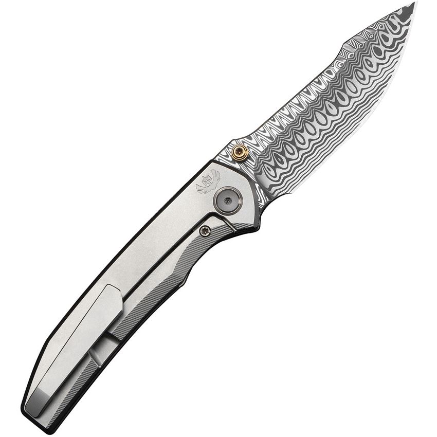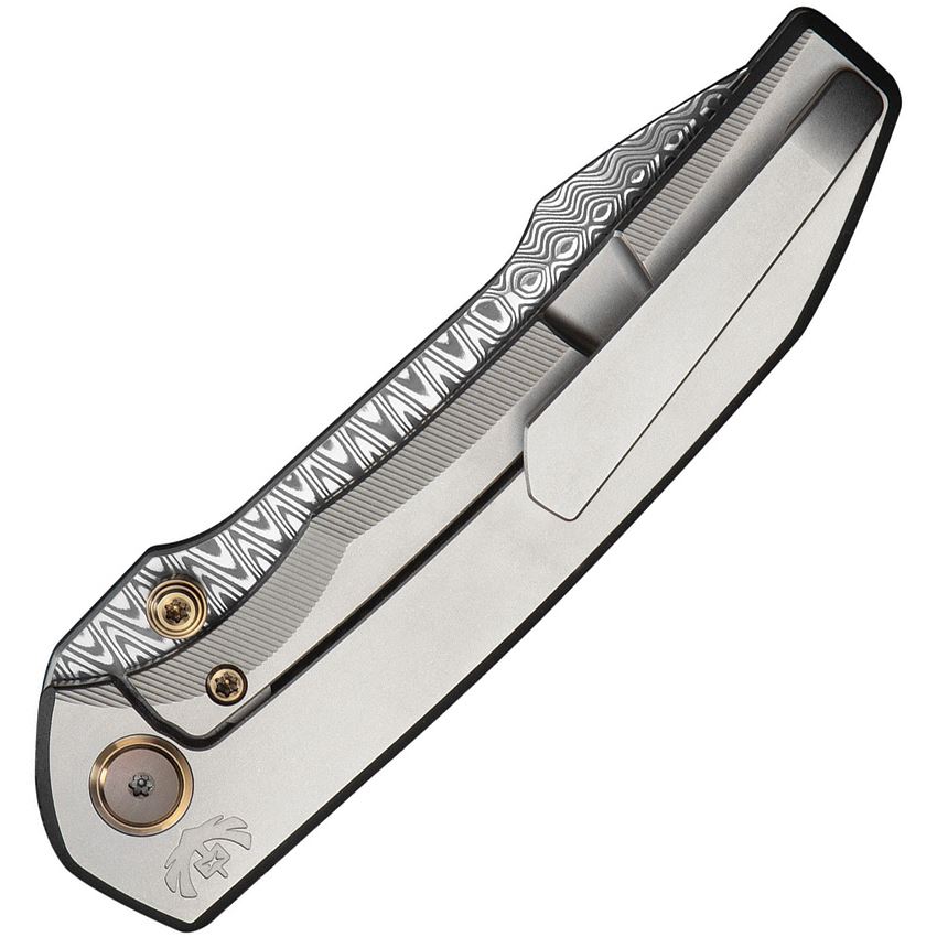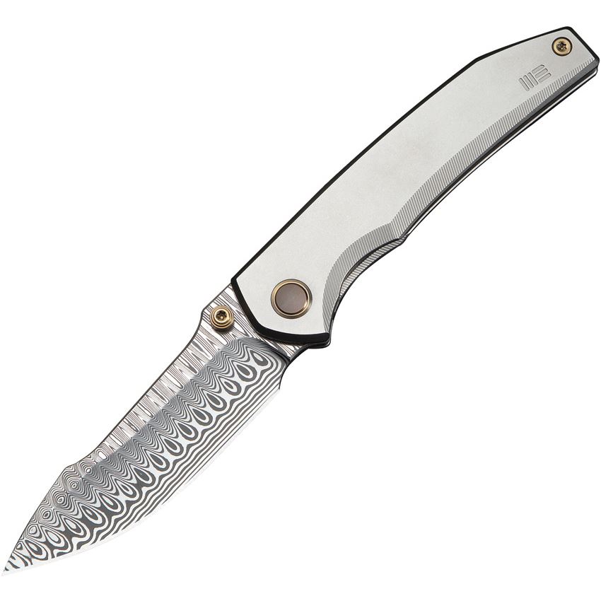 WE 24086DS1 Ryson Damasteel Harpoon Framelock Knife Gray Titanium Handles