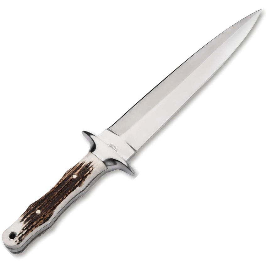 Boker 02BA5918HX Colmillo GX Satin Dagger Fixed Blade Knife Stag Handles