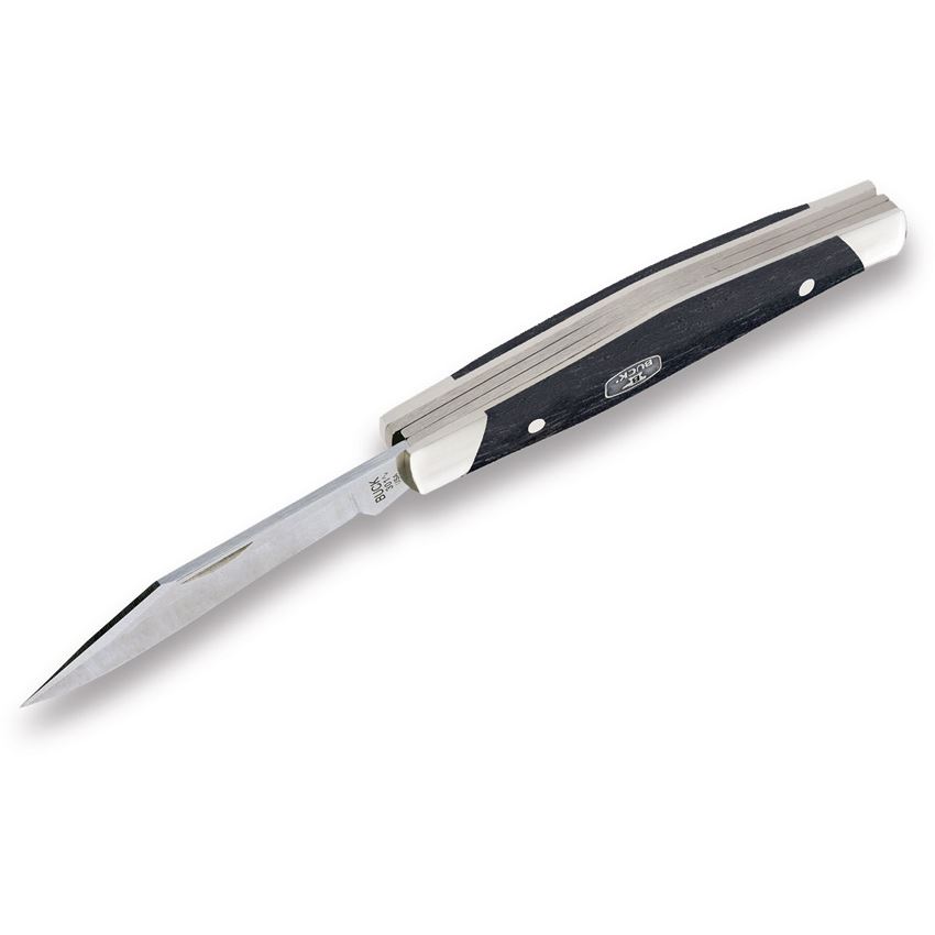 Model/Item/Part Number - BU301BRS2. Buck Knives - Stockman Knife Ebony Wood Handles. 4" (10.16cm) closed. Satin finish 420HC stainless clip, sheepsfoot, and spey blades. Ebony wood handle. Nickel silver bolster(s). Inlay shield. Boxed. Made in USA.