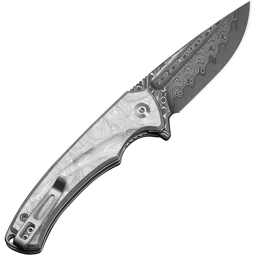 Model/Item/Part Number - CIVC24040DS1. Civivi Knives - Voidflare Damascus Drop Point Linerlock Knife Aluminum Foil/G10 Handles. 4.13" (10.49cm) closed. 3" (7.62cm) Damascus steel drop point blade. Extended tang. Lanyard hole. Pocket clip. Aluminum foil and G10 handle. Black nylon zippered storage case. Boxed. Made in China.