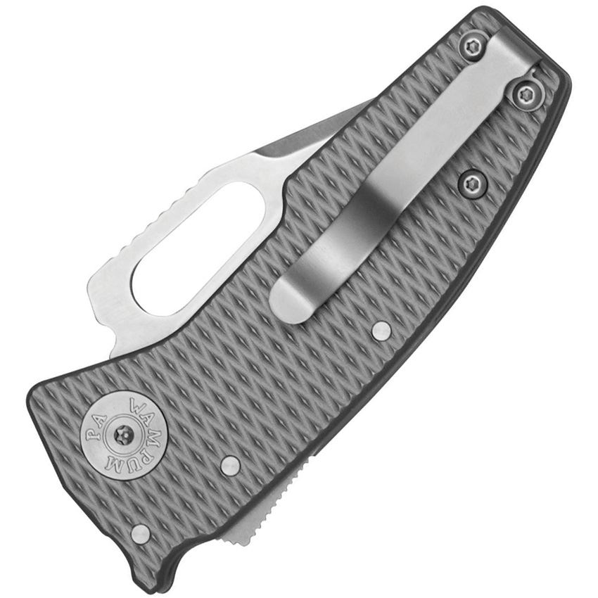 • 2.13 inch (5.41cm) satin finish CPM-20CV stainless clip point blade