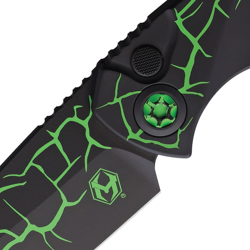 Heretic 048MAGTX Auto Pariah Drop Point Button Lock Knife Green Handles