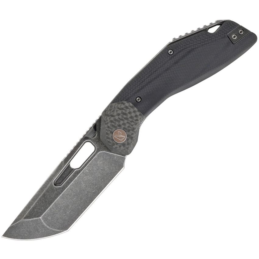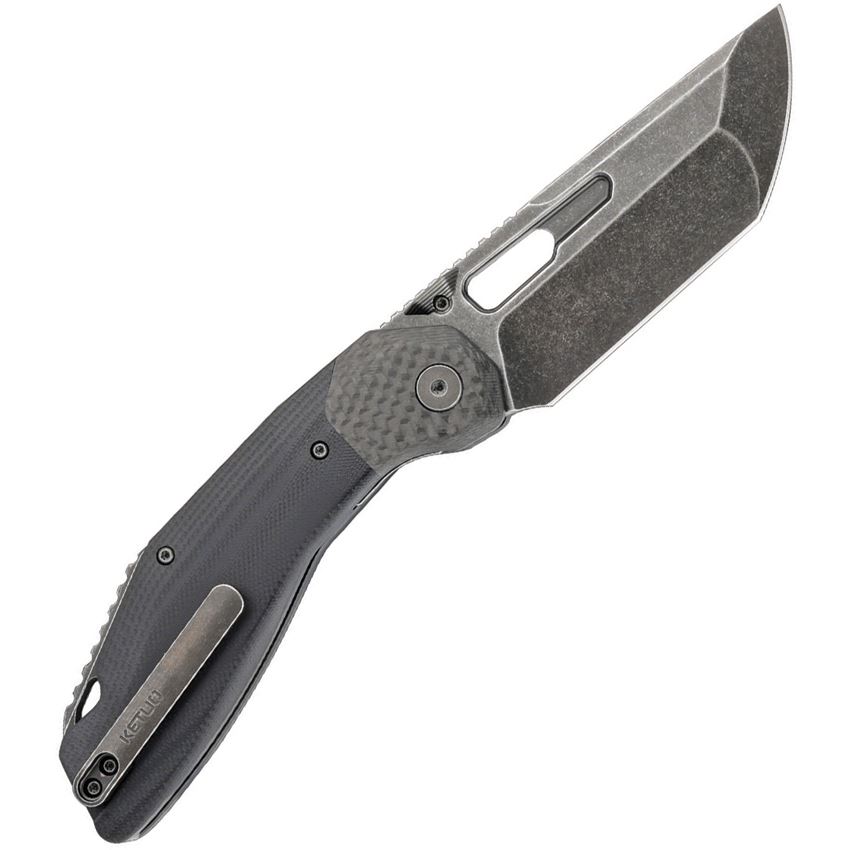 Model/Item/Part Number - KETM060. Ketuo Cutlery - Yakuza Black Stonewash Tanto Linerlock Knife Black G10 Handles. 4.38" (11.13cm) closed. 3.38" (8.59cm) black stonewash finish 14C28N Sandvik stainless tanto blade. Black G10 handle. Carbon fiber bolster(s). Thumb disk. Thumb pull. Lanyard hole. Pocket clip. Boxed. Made in China.