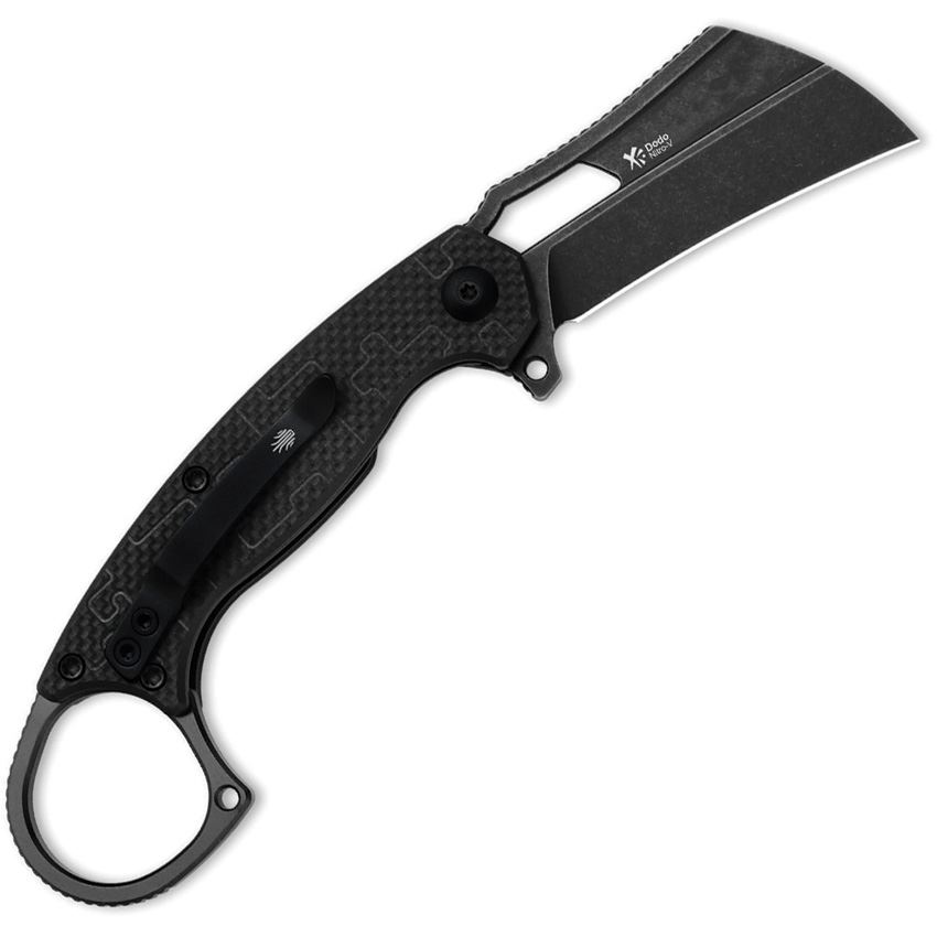 Model/Item/Part Number - KIV2702A3. Kizer Cutlery & Knives - Dodo Black Stonewash Krambit Linerlock Knife Black G10 Handles. 4.5" (11.43cm) closed. 2.25" (5.72cm) black stonewash finish Nitro V steel blade. Black G10 handle. Extended tang. Thumb pull. Finger ring. Pocket clip. Modified karambit blade. Boxed. Made in China.