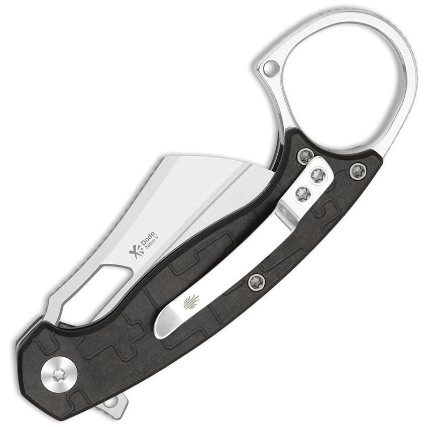 Model/Item/Part Number - KIV2702A1. Kizer Cutlery & Knives - Dodo Two-Tone Krambit Linerlock Knife Richlite Handles. 4.5" (11.43cm) closed. 2.25" (5.72cm) Nitro V steel blade. Extended tang. Thumb pull. Finger ring. Pocket clip. Satin and brushed finish modified karambit blade. Richlite handle. Boxed. Made in China.