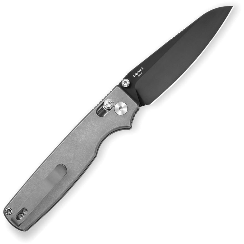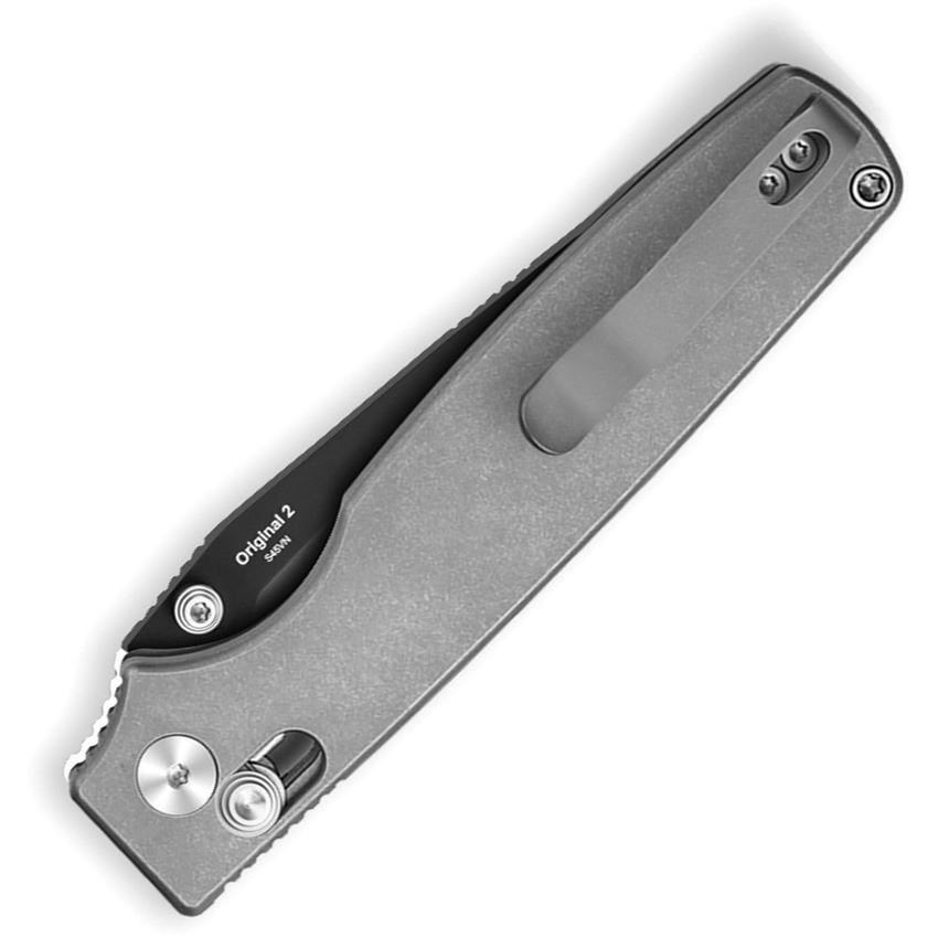 Kizer 36052SA1 Original 2 Black Sheepsfoot Clutch Lock Knife Gray Stonewash Titanium Handles