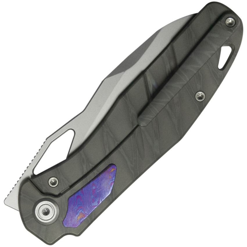 • Kubey Knives - Sudden Stonewash Sheppsfoot Framelock Knife Gray Titanium/Timascus Handles
