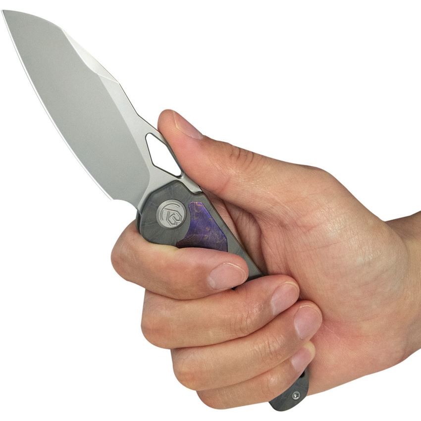 Model/Item/Part Number - KUB385B. Kubey Knives - Sudden Stonewash Sheppsfoot Framelock Knife Gray Titanium/Timascus Handles. 4.38" (11.13cm) closed. 3.5" (8.89cm) stonewash finish CPM-20CV stainless sheepsfoot blade. Gray titanium handle with Timascus inlay. Extended tang. Thumb pull. Lanyard hole. Pocket clip. Designed by Utilizator. Boxed. Made in China.