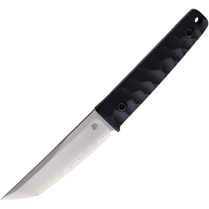Model/Item/Part Number - NMB2416BK. North Mountain Blade Company - Chop Mini Tanto Fixed Blade Knife Black G10 Handles. 7.5" (19.05cm) overall. 3.38" (8.59cm) tanto blade. Black sculpted G10 handle. Full tang. Lanyard hole. SLD-MAGIC blade. Black Kydex belt sheath. Boxed. Made in China.