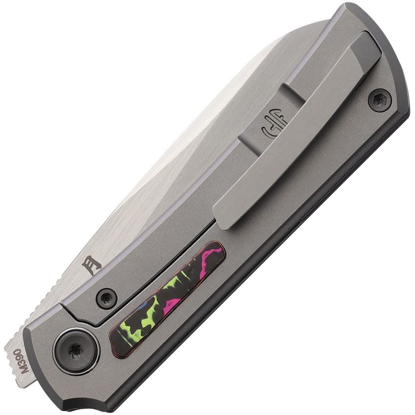 • North Mountain Blade Company - Moon Brushed Sheepsfoot Framelock Knife Brushed Titanium/Glow Carbon Fiber Handles
