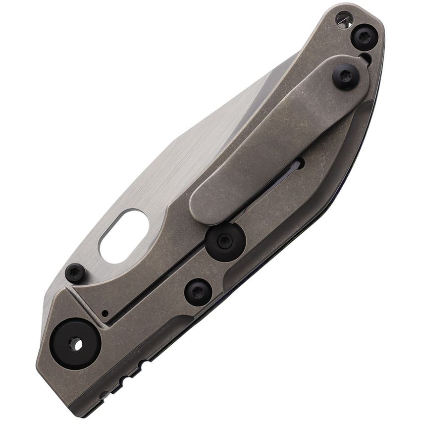 • Purple and yellow ceramic carbon fiber handle with stonewash finish titanium back handle