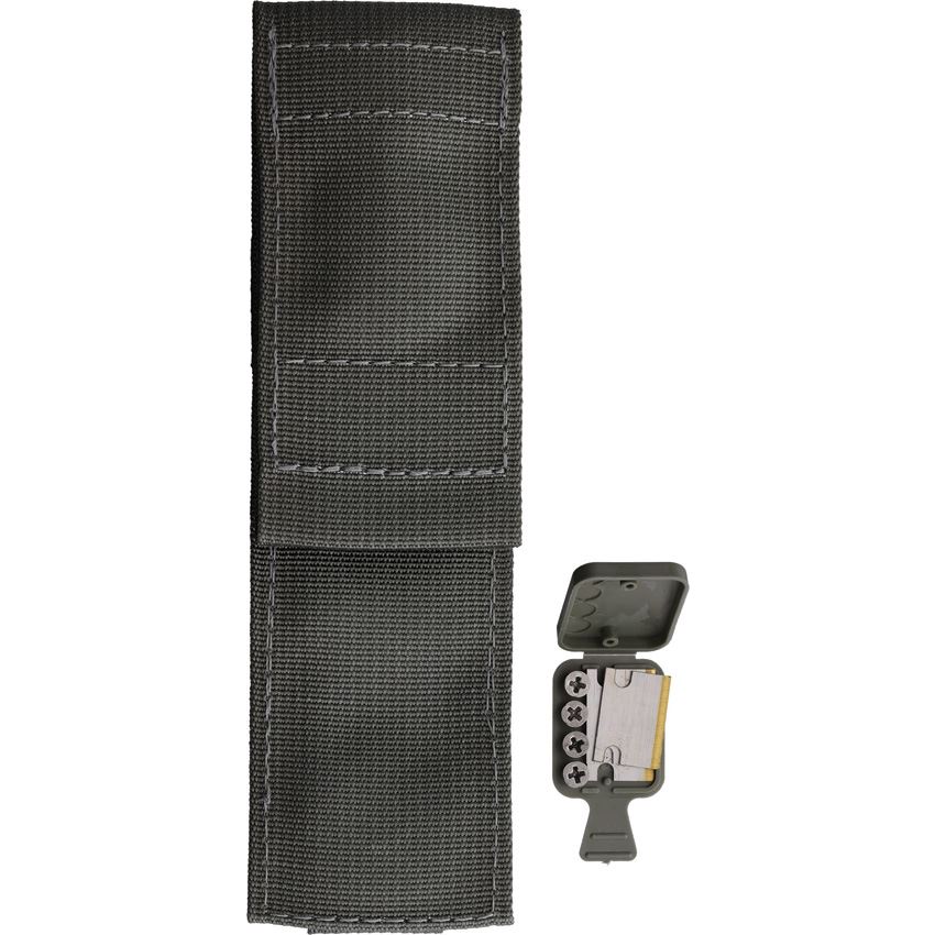 Model/Item/Part Number - ON1406. Ontario Knife Company - Model 1 Strap Cutter OD Green Handles. 6.6" (16.76cm) overall. 0.47" (1.19cm) stainless blade. OD green finger grooved aluminum handle. Lanyard hole. Ceramic rod on top of handle. OD green nylon MOLLE compatible belt sheath. Bagged. Made in USA.