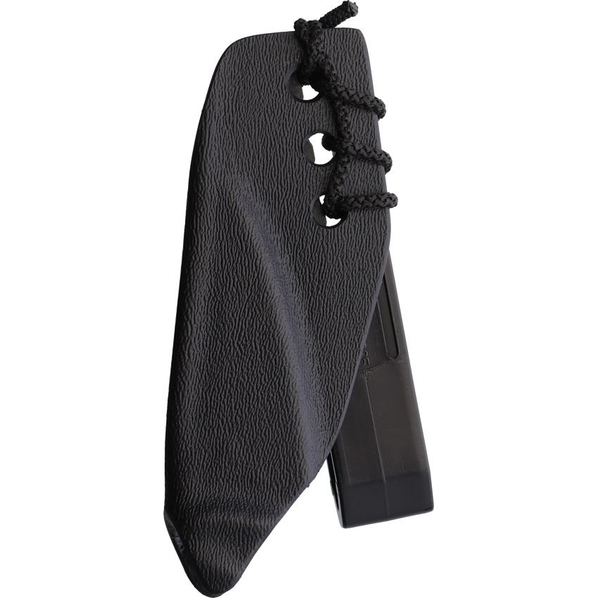 Model/Item/Part Number - RVC001SE. Revenant Corps Knives - Grackle Fixed Blade Knife Single Edge Black G10 Contruction. 5.75" (14.61cm) overall. 2.75" (6.99cm) blade. Single edge blade. Black G10 one-piece construction. Marine grade epoxy soaked tsukomaki handle wrap. Due to their handmade qualities, please allow for slight deviation in OAL and weight. Black Boltaron belt sheath. Bagged. Made in USA.