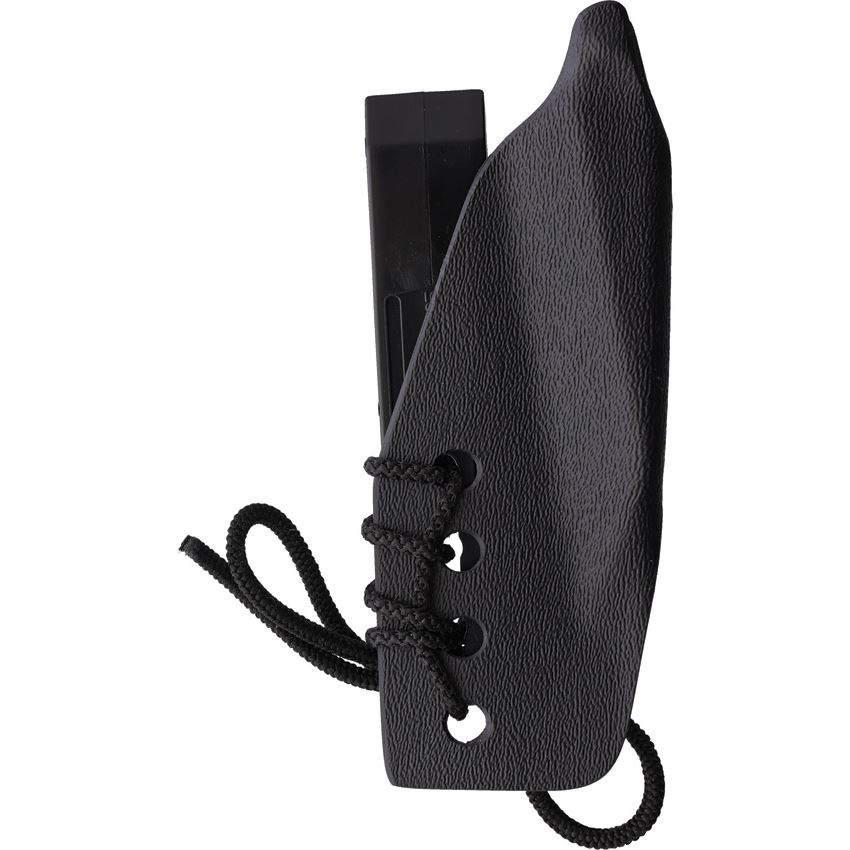 Model/Item/Part Number - RVC011V2. Revenant Corps Knives - RCK V2 Fixed Blade Knife Black G10 Contruction. 7.5" (19.05cm) overall. 3.13" (7.95cm) blade. Black G10 construction. Epoxy coated hemp twine Tsukomaki wrapped handle. Due to their handmade qualities, please allow for slight deviation in OAL and weight. Black Boltaron belt sheath. Bagged. Made in USA.
