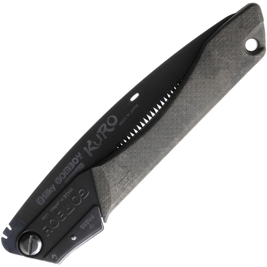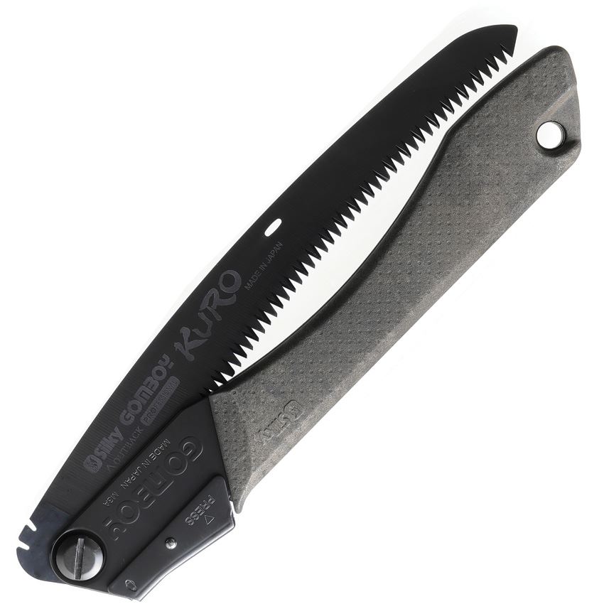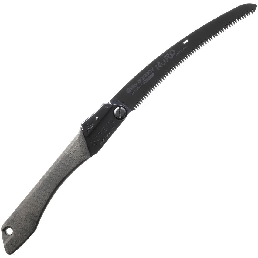 Model/Item/Part Number - SKS80124. Silky Saws - Gomboy Kuro Outback Edition. 10.63" (27cm) closed. 9.5" (24.13cm) blade. 40th anniversary limited edition. Black oxide scraper-shaped Gokai-Me teeth. Arbor composite grip. All black components. Limited, one-time production run. Curved blade. 8 teeth per inch. Boxed with hanging tab. Made in Japan.