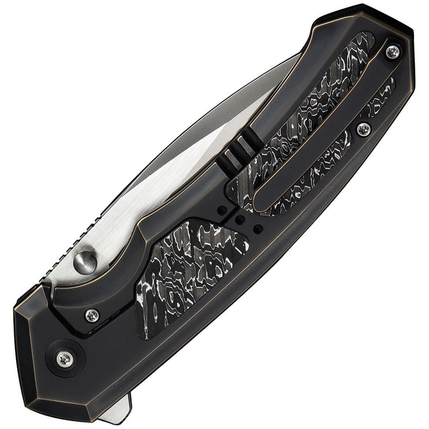 • Black and bronze titanium handle with Aluminum foil carbon fiber inlay