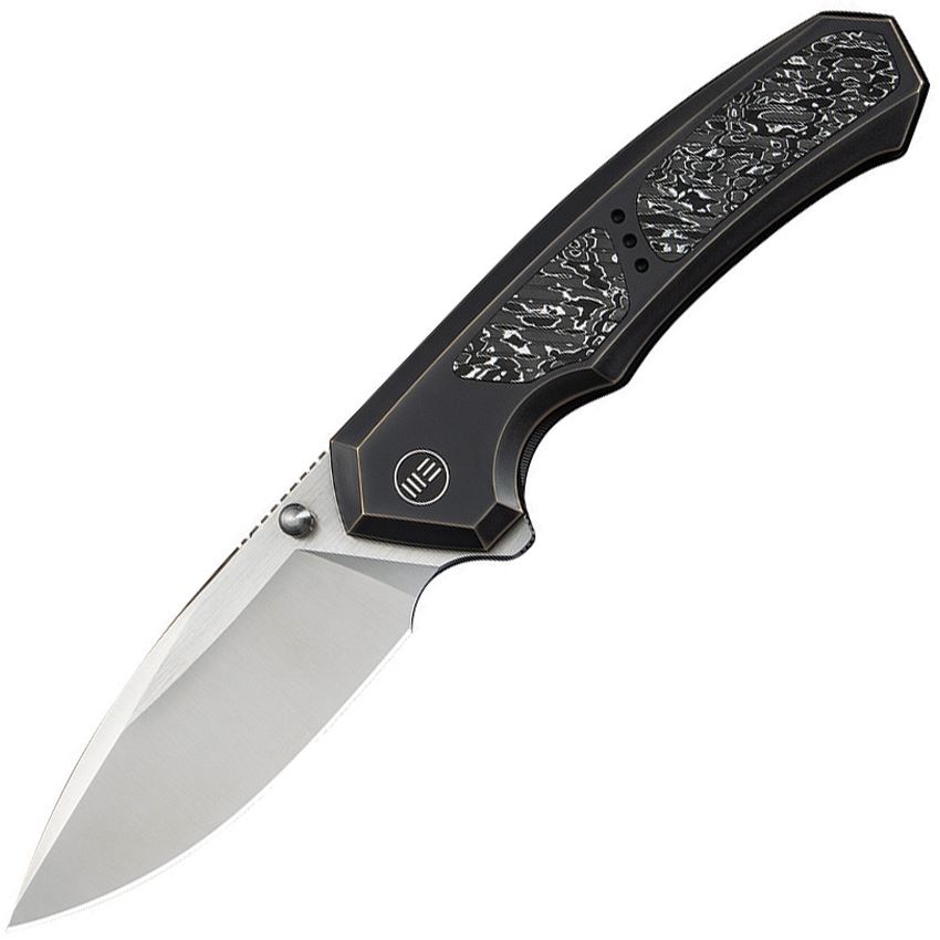 • WE Knife Company - Corwyn Satin Drop Point Framelock Knife Alum Foil Carbon Fiber Handles