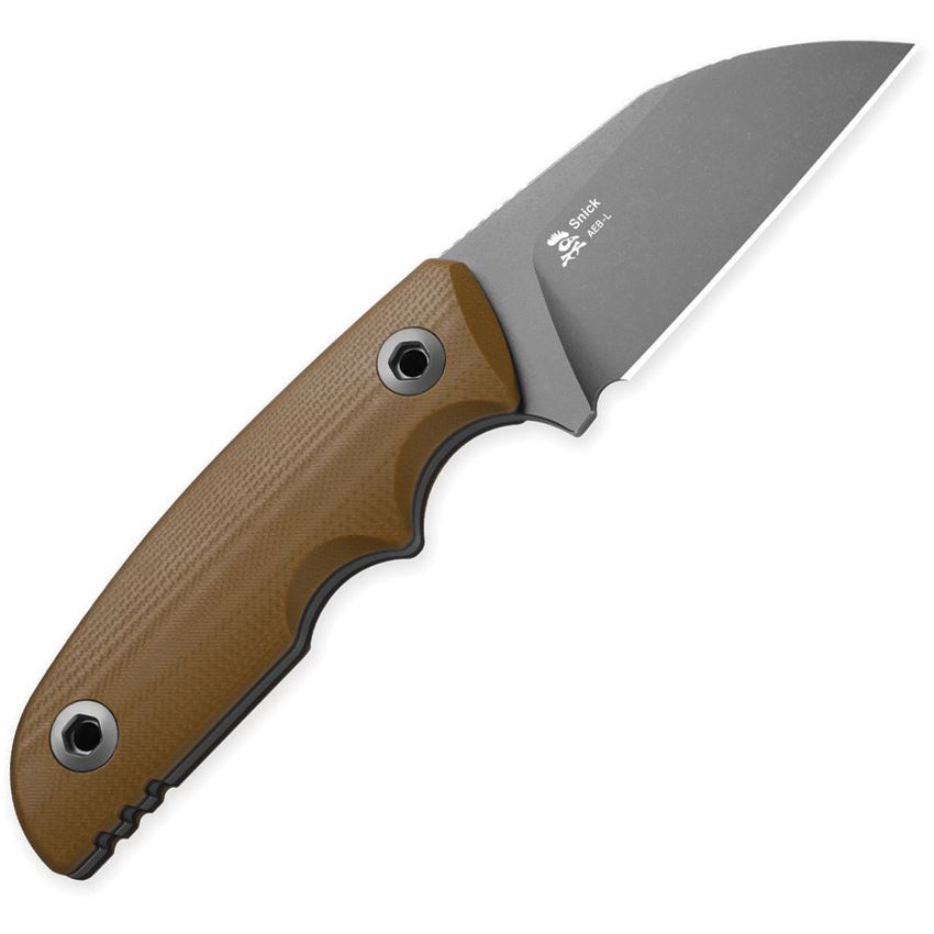 Model/Item/Part Number - KI1085A2. Kizer Snick Grey Stonewash Fixed Blade Knife Brown G10 Handles. 6.75" (17.15cm) overall. 2.63" (6.68cm) gray stonewash finish AEB-L stainless sheepsfoot blade. Brown G10 handle. Full tang. Black Kydex belt sheath. Boxed. Made in China
