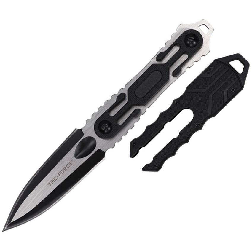 Model/Item/Part Number - TFFIX124GY. Tac Force Black Oxide Dagger Fixed Blade Knife Gray ABS Handle. 6" (15.24cm) overall. 2.88" (7.32cm) black oxide coated 3Cr13MoV stainless dagger blade. Gray ABS handle. Lanyard hole. Full tang. Sheath doubles as handle extender. Gray ABS sheath. Boxed. Made in China.